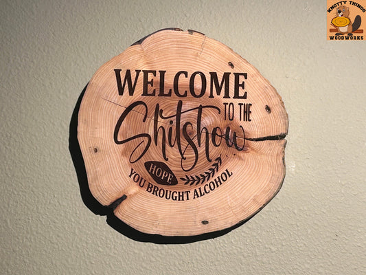"Welcome to the Shit Show" Round Wood Slice Sign